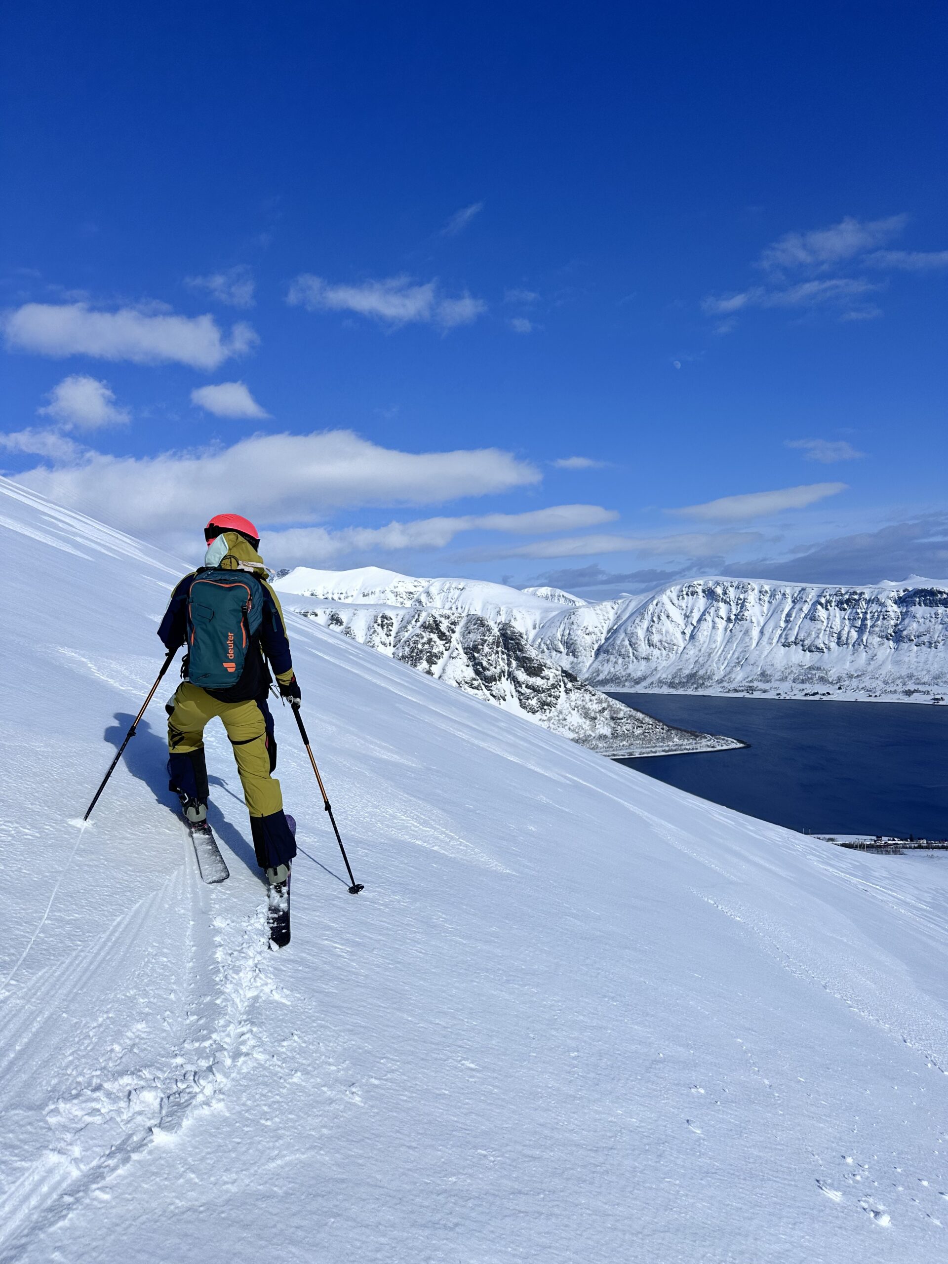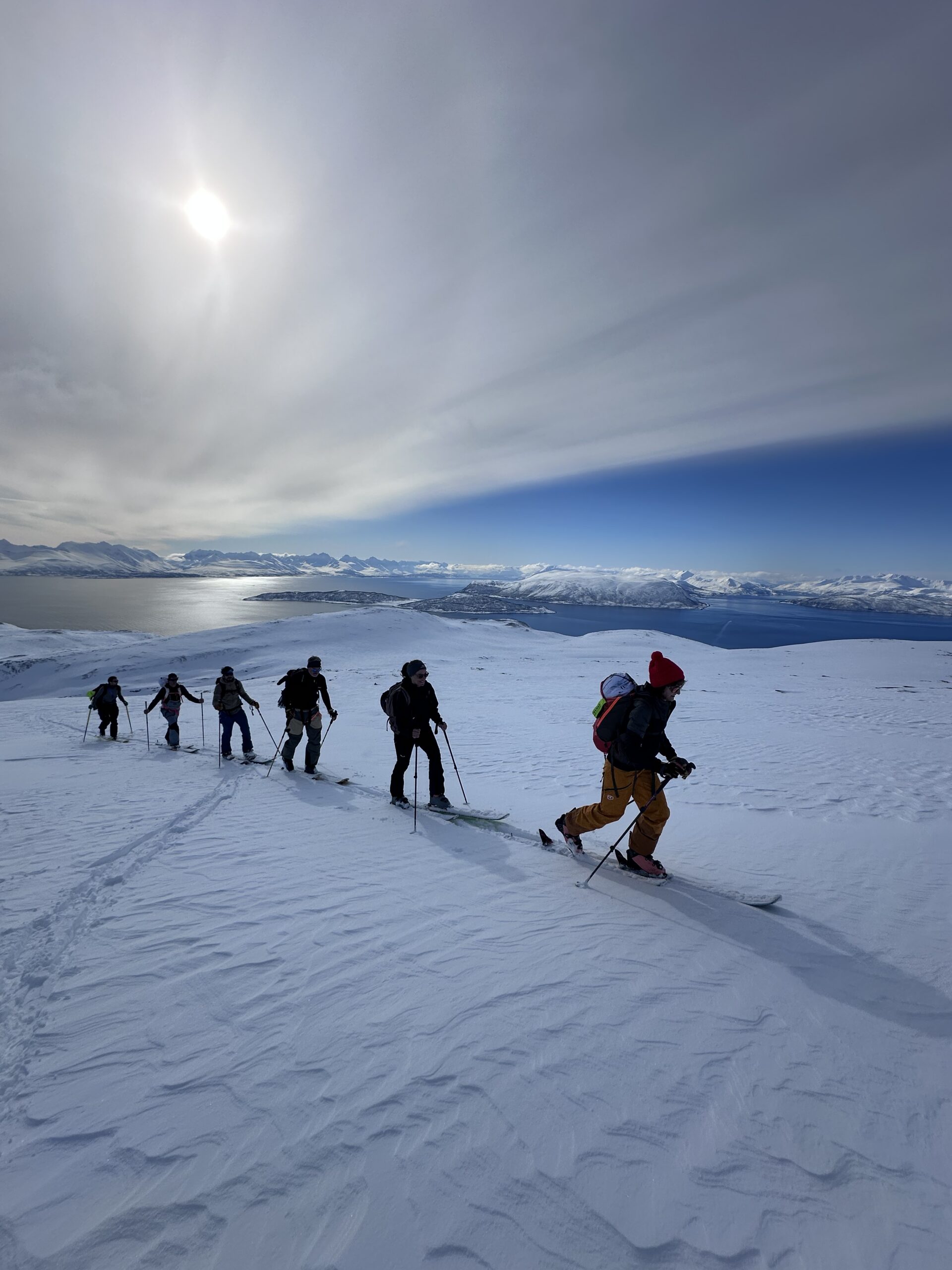 Unverspurte Hänge, steile Lines, endlose Weite – und immer das Meer im Blick. Mit dem Segelboot als Basecamp erkundest du täglich neue Tourenziele: Ankern in stillen Fjorden, Felle am Strand aufziehen und direkt vom Wasser auf den Gipfel starten.